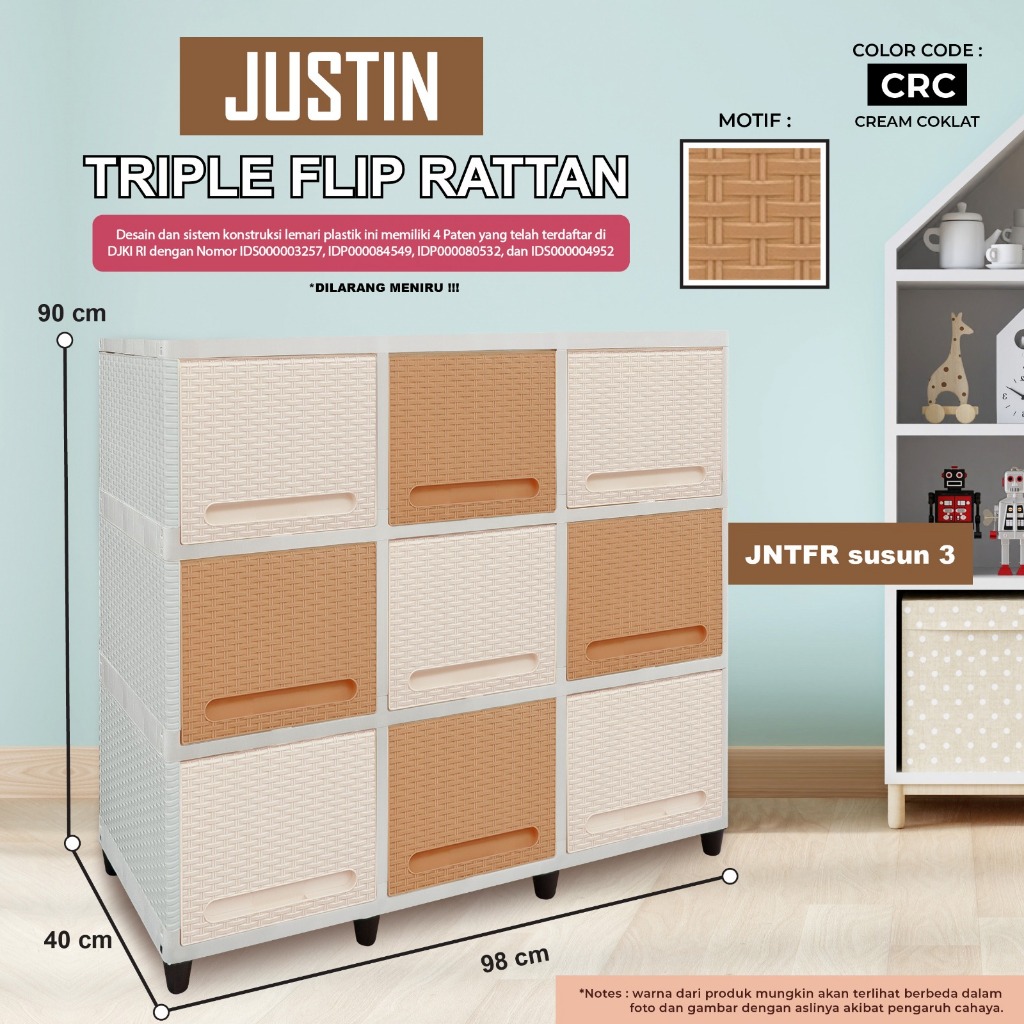 Lemari Plastik Pintu Geser / Laci Plastik Rak TV / Meja TV / Lemari Pakaian Plastik Triple Flip Susun 3 Gratis Ongkir