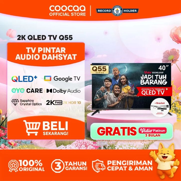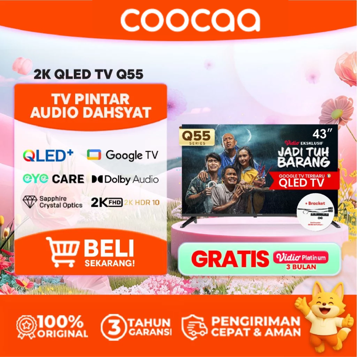 FREE BRACKET TV COOCAA 4K QLED SMART GOOGLE TV 55 INCH Q55 Y65 DOLBY AUDIO ANDROID WIFI YOUTUBE 50 43 40 32 IN TERBARU