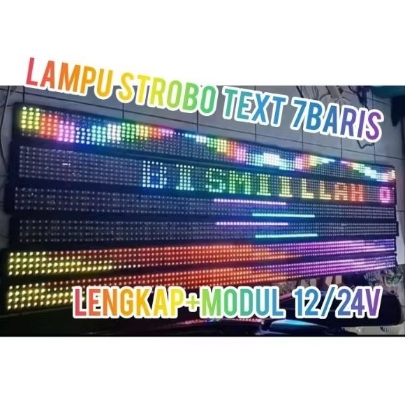 Lampu StroboKaca Text 7Baris Wifi Mobil Pickup Truk & Bus 12V/24V SETTING TULISAN VIA HP ANDROID