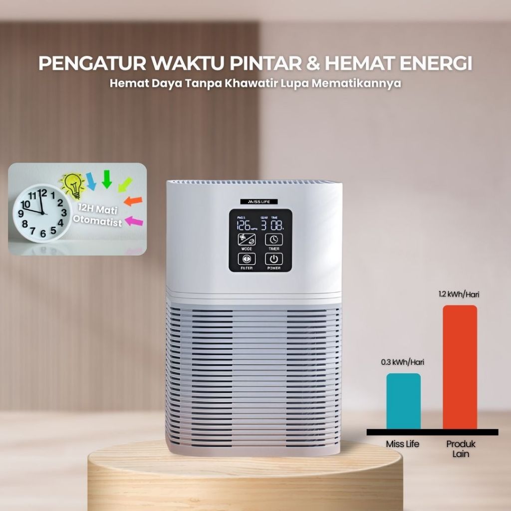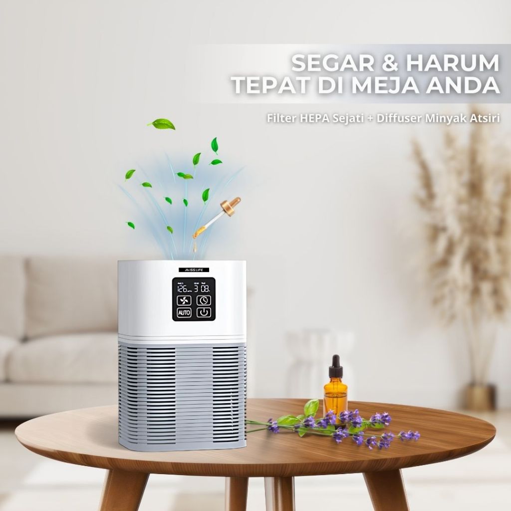 MISS LIFE aromatherapi air purifier pembersih udara aromaterapi air purifier dengan penyebar aroma, alat penyaring udara
