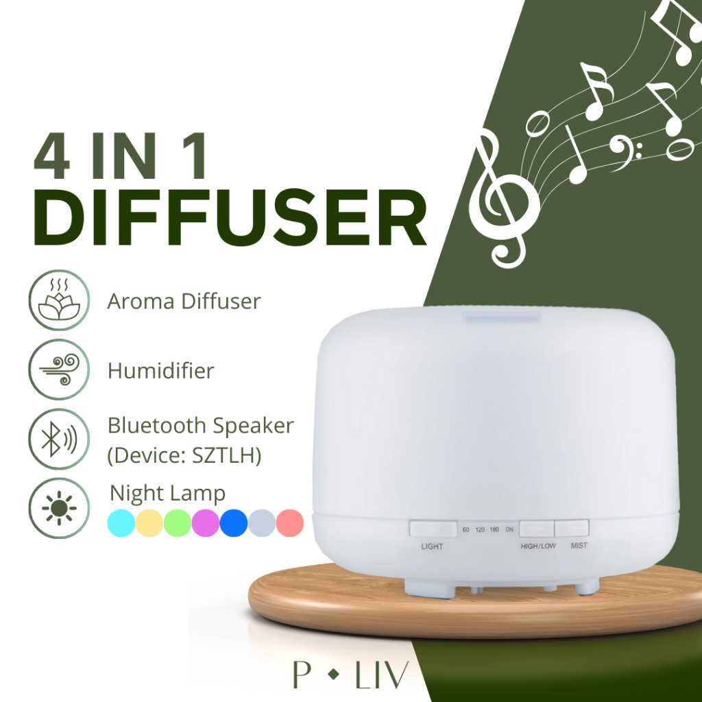 Pure Living Diffuser Bluetooth Speaker + Night Lamp 500mL Capacity - Essential Oil Diffuser