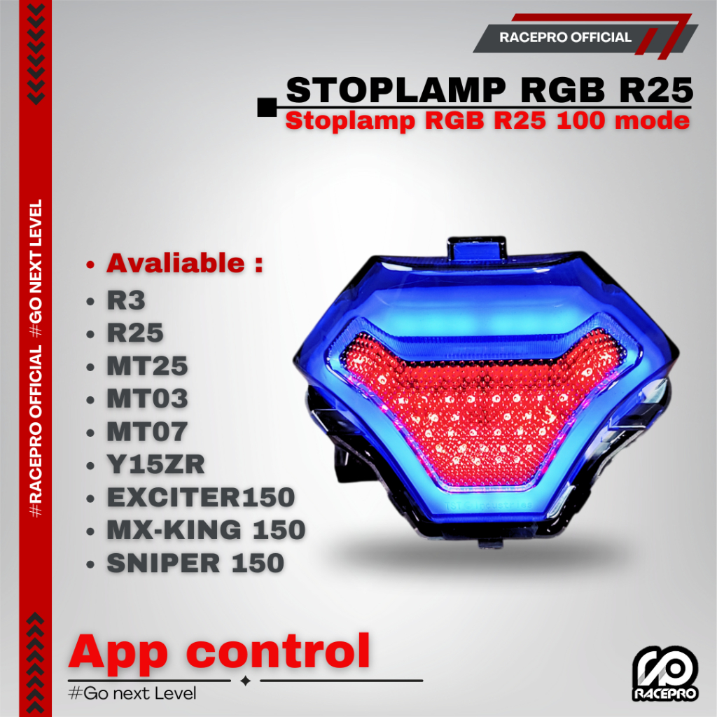STOPLAMP R25 RACEPRO RGB CONTROL MODE APLIKASI LAMPU BELAKANG R25/MX KING/MT25/DLL