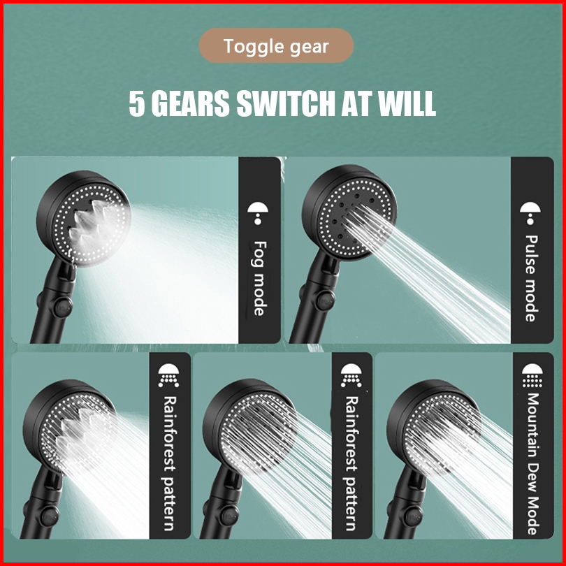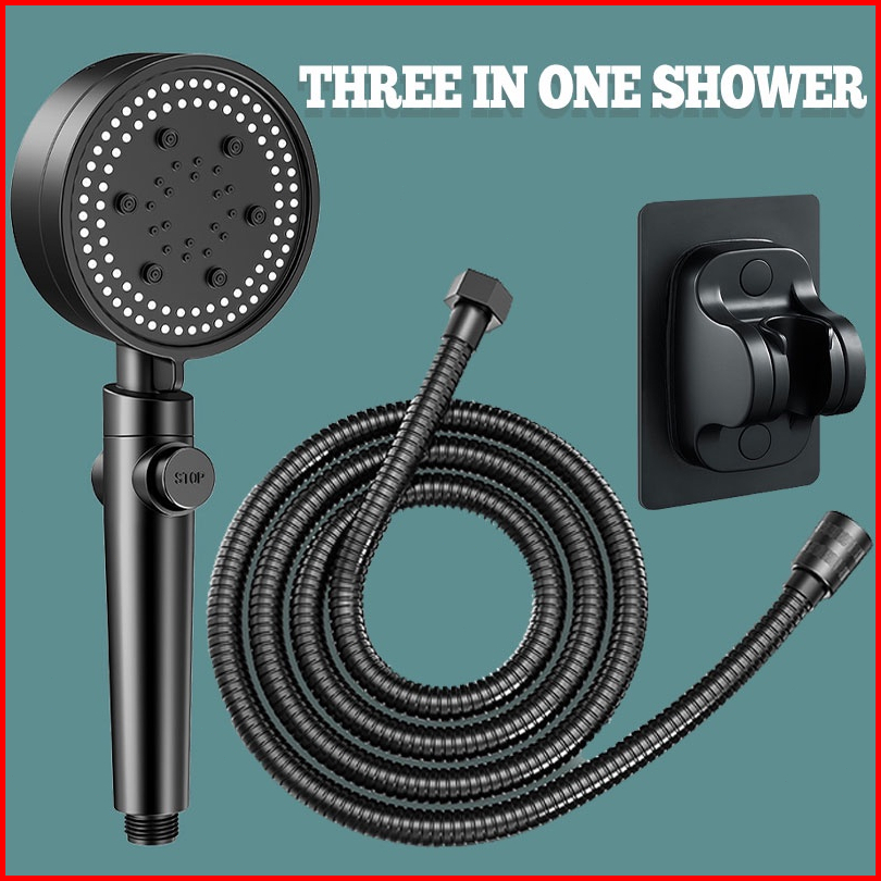 3in 1 Kepala Shower Set Mandi Hitam Premium Shower Head Set 5 E Adjustable Shower Dengan Selang Portable Kamar Mandi Sho