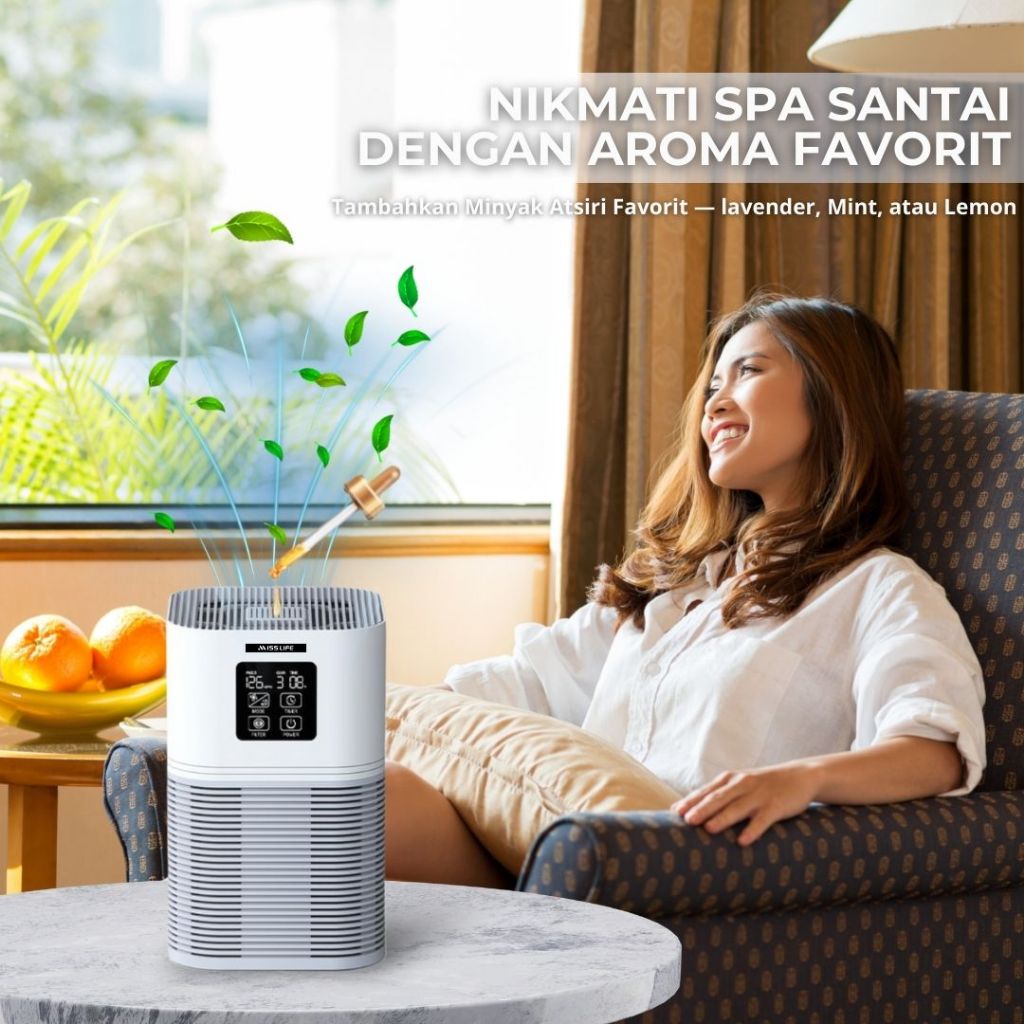 MISS LIFE aromatherapi air purifier pembersih udara aromaterapi air purifier dengan penyebar aroma, alat penyaring udara