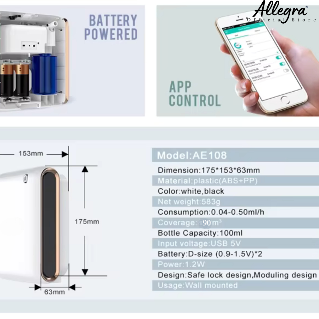 ALLEGRA MESIN LUXURY SLIM PENGHARUM RUANGAN OTOMATIS TOILET LIFT KORIDOR BATERAI