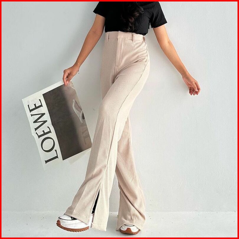 Celana Knit Waffle Slit - Celana Kulot Knit Rib Panjang - Knit Pants - Loose Pants Highwaist Kulot Panjang Basic