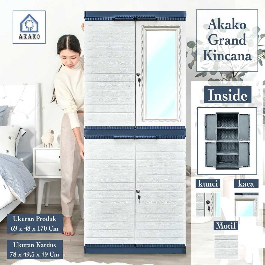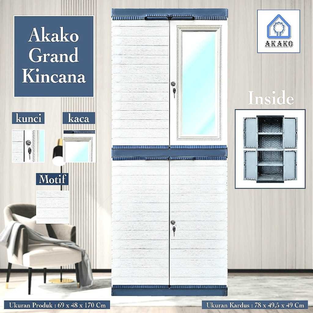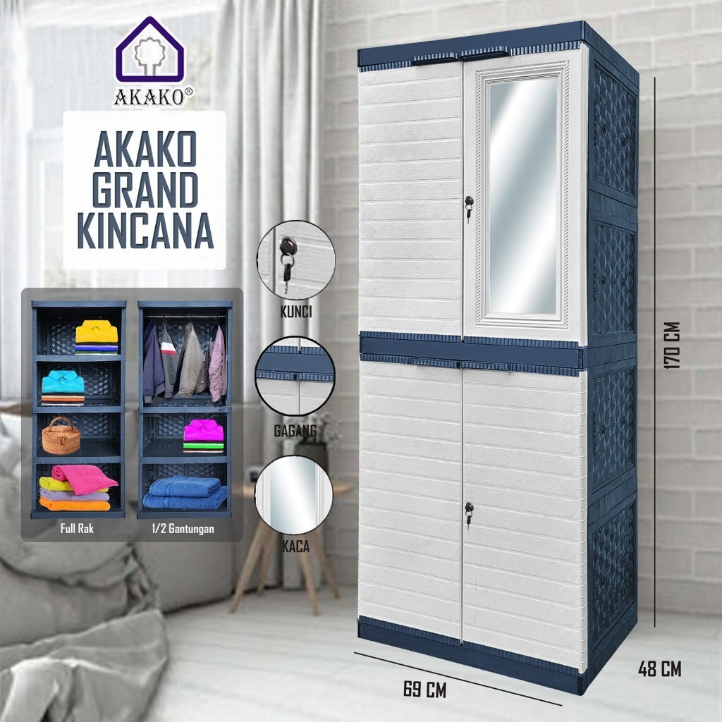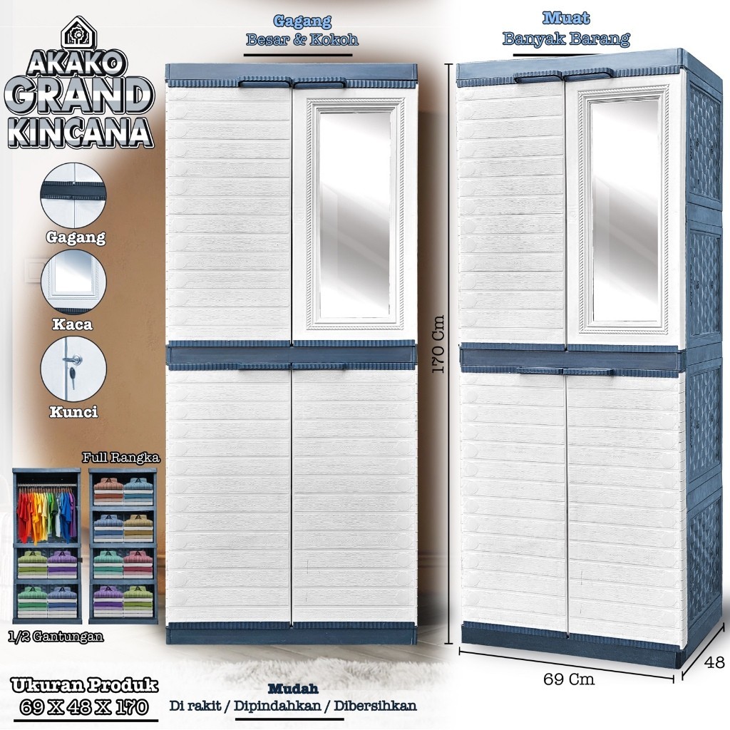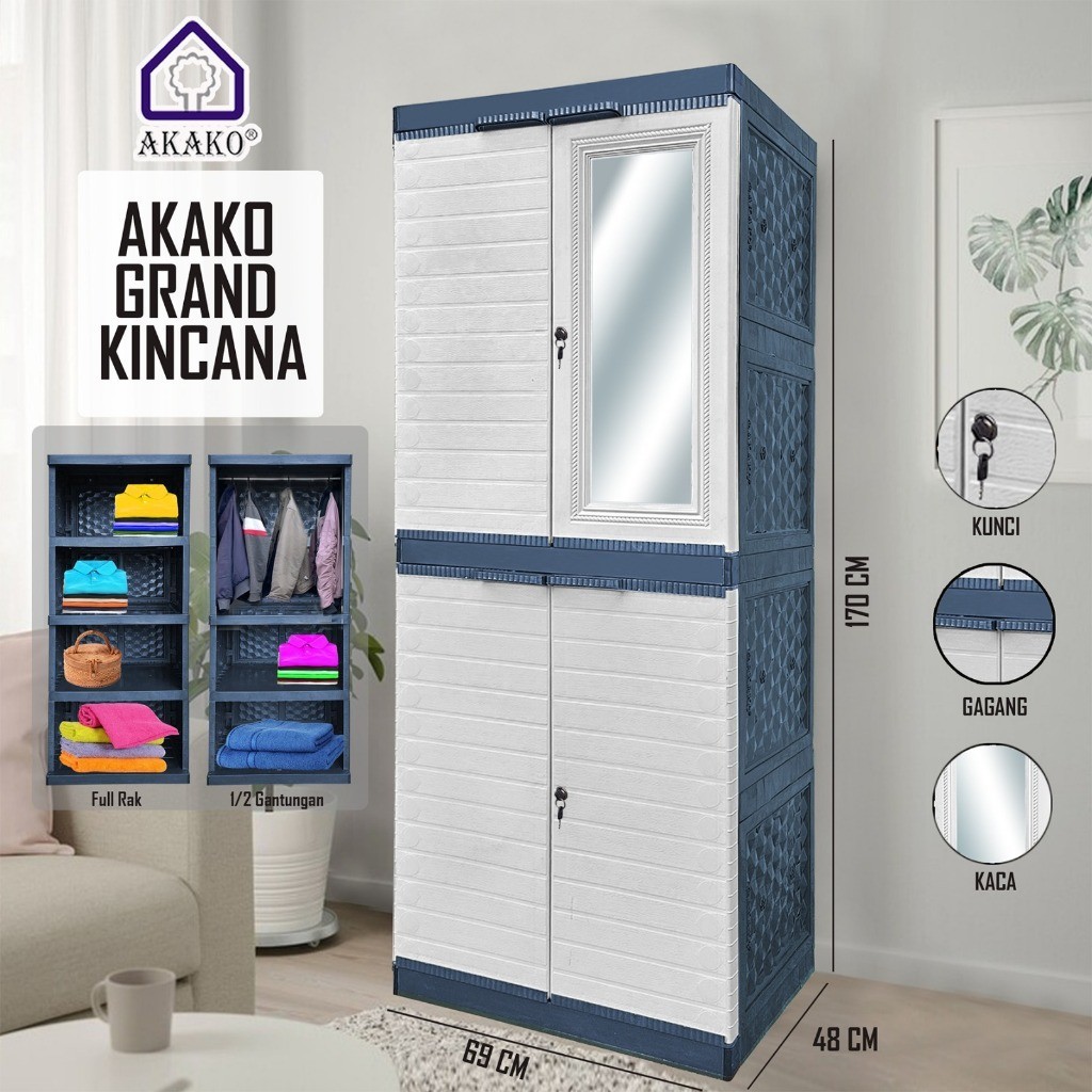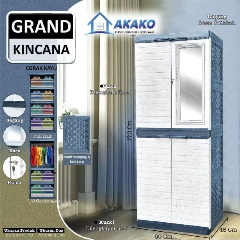 Lemari Pakaian Plastik Grand Kincana 2 Pintu + Kaca AKAKO Gratis Ongkir
