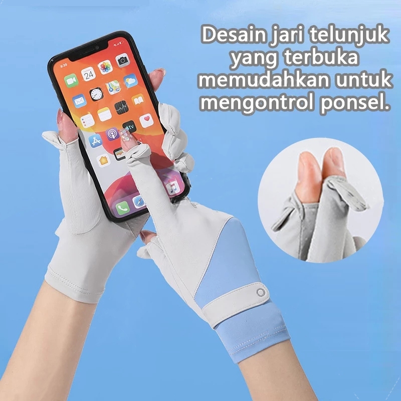 Sarung Tangan Motor Sepeda Pria Wanita Ice Silk Gloves Anti Slip Es Sutra Nyaman dan Bernapas Cewek Anti Air Touch Screen Setengah Jari Half Finger