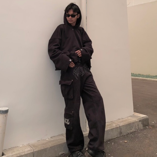 Hoodie Boxy Oversize Cleon Unfinish hitam unisex - Amerta