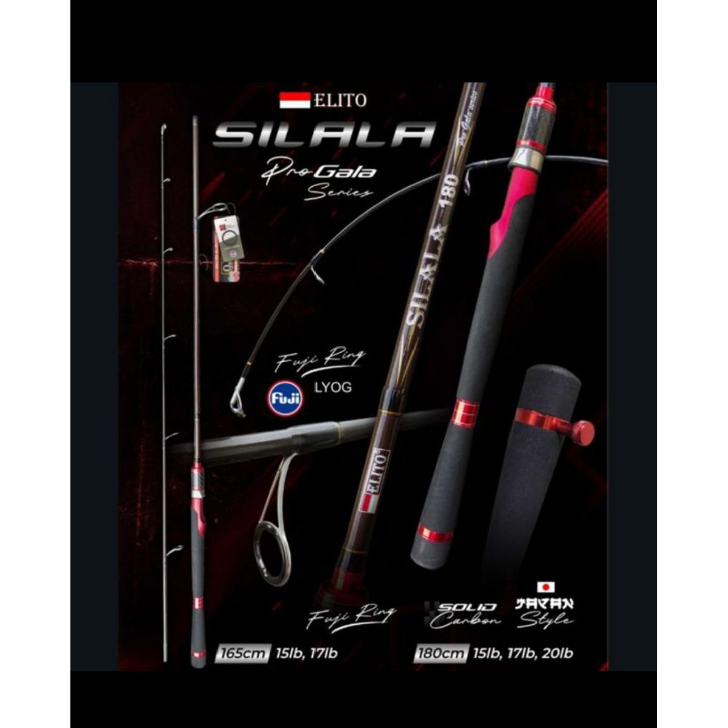 joran elito silala carbon solid p165cm/p180cm reel set dan ring full Fuji spining