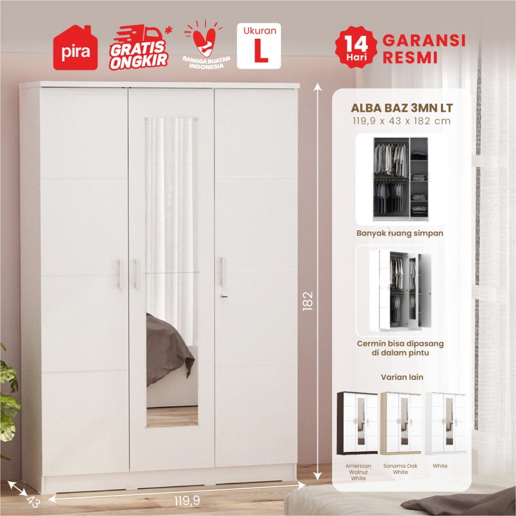 Lemari Pakaian 3 Pintu Alba BAZ 3MN LT