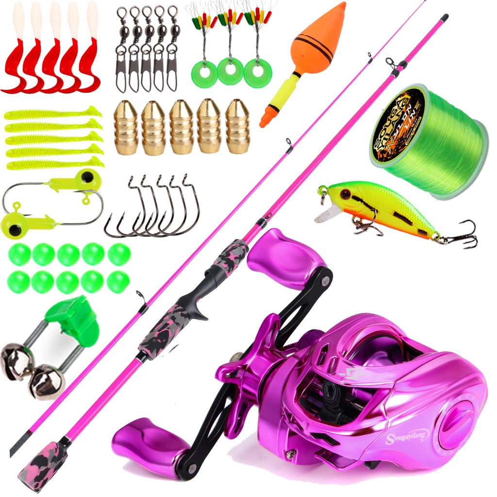 Set Pancing 1.8M Fishing Rod and Reel Combo Casting Rod and 12+1BB High Speed Baitcasting Reel Line Lure Hooks Bag Full
