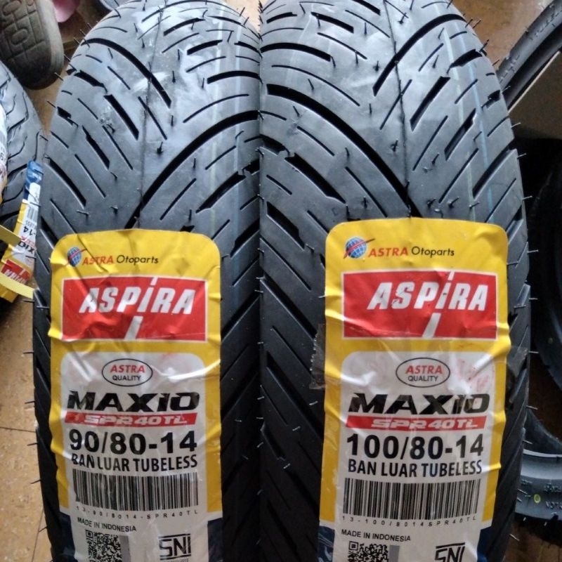 Paket Sepasang Ban Luar Aspira Maxio Spr40Tl - Tubeless (80/80 - 90/80 - 100/80 - 100/90 - 110/90) Ring 14 12 Tl Ban Tub