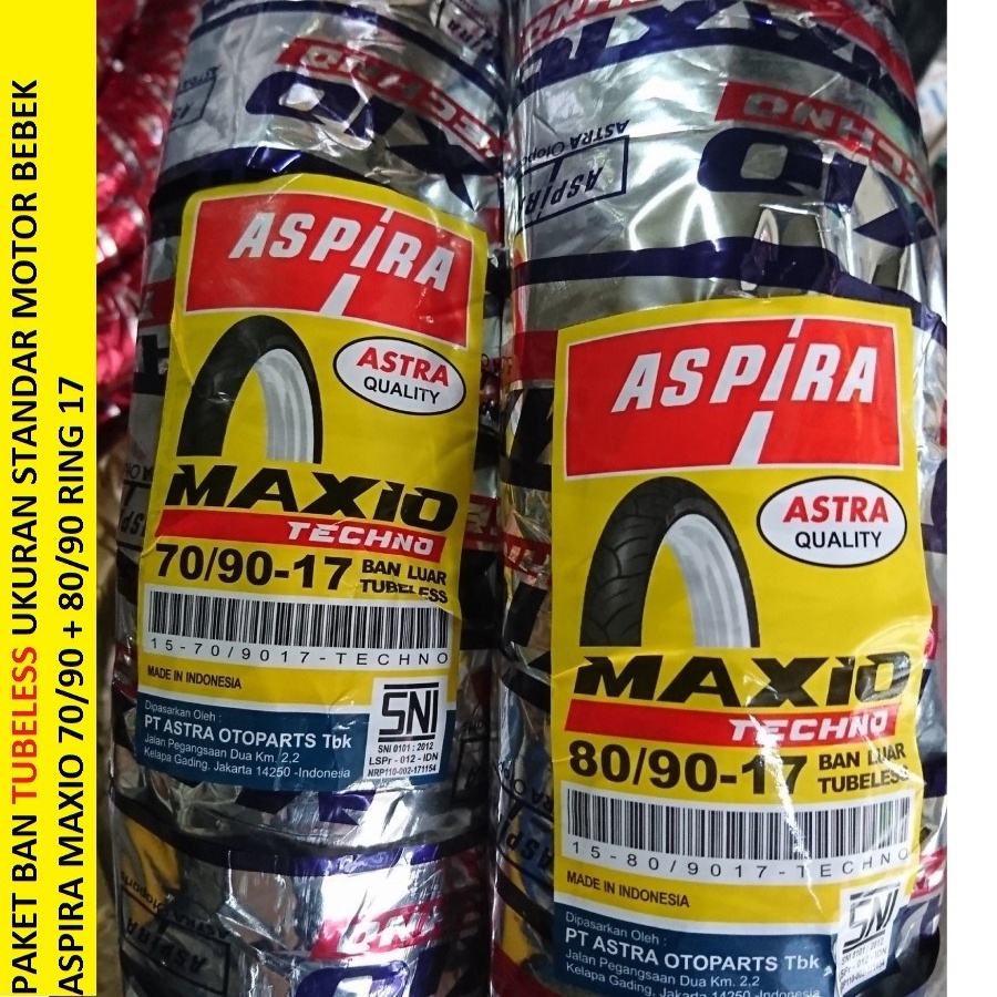 Paket Ban Tubeless Maxio Techno 70 90 & 80 90 Ring 17 Sepasang Ban Motor Bebek Supra Vega Jupiter Sonic Satria