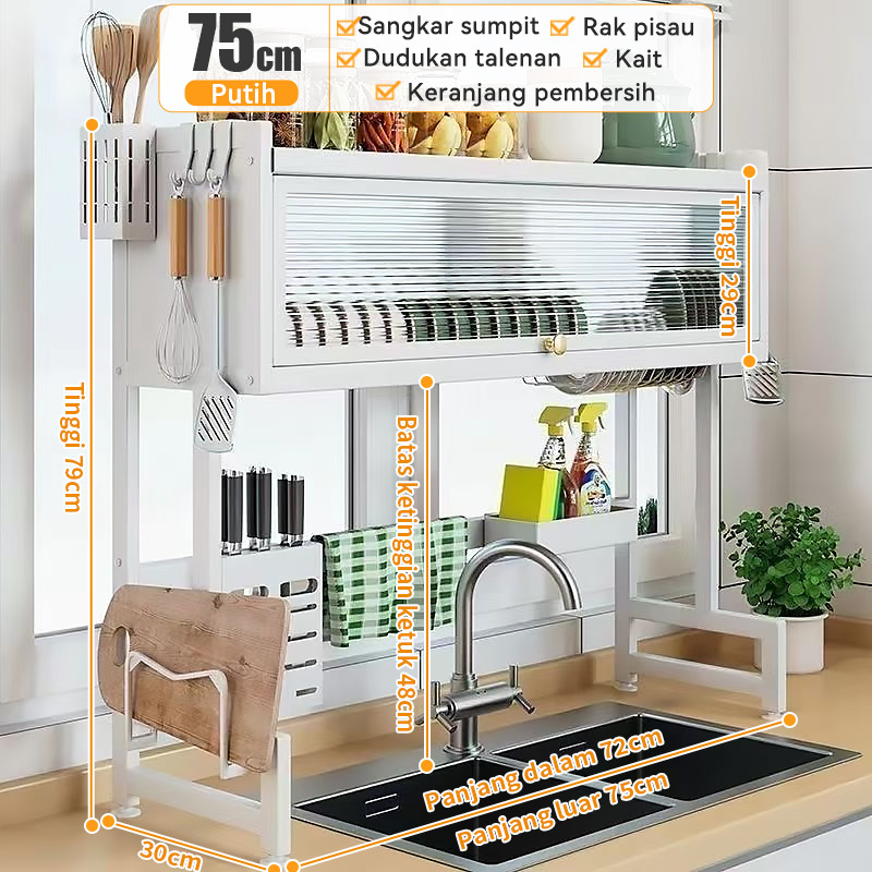 2 Susun Rak Piring Wastafel Dengan Kabinet Rak Wastafel Cuci Piring Rak Piring Stainless Steel Rak Dapur Multifungsi Den
