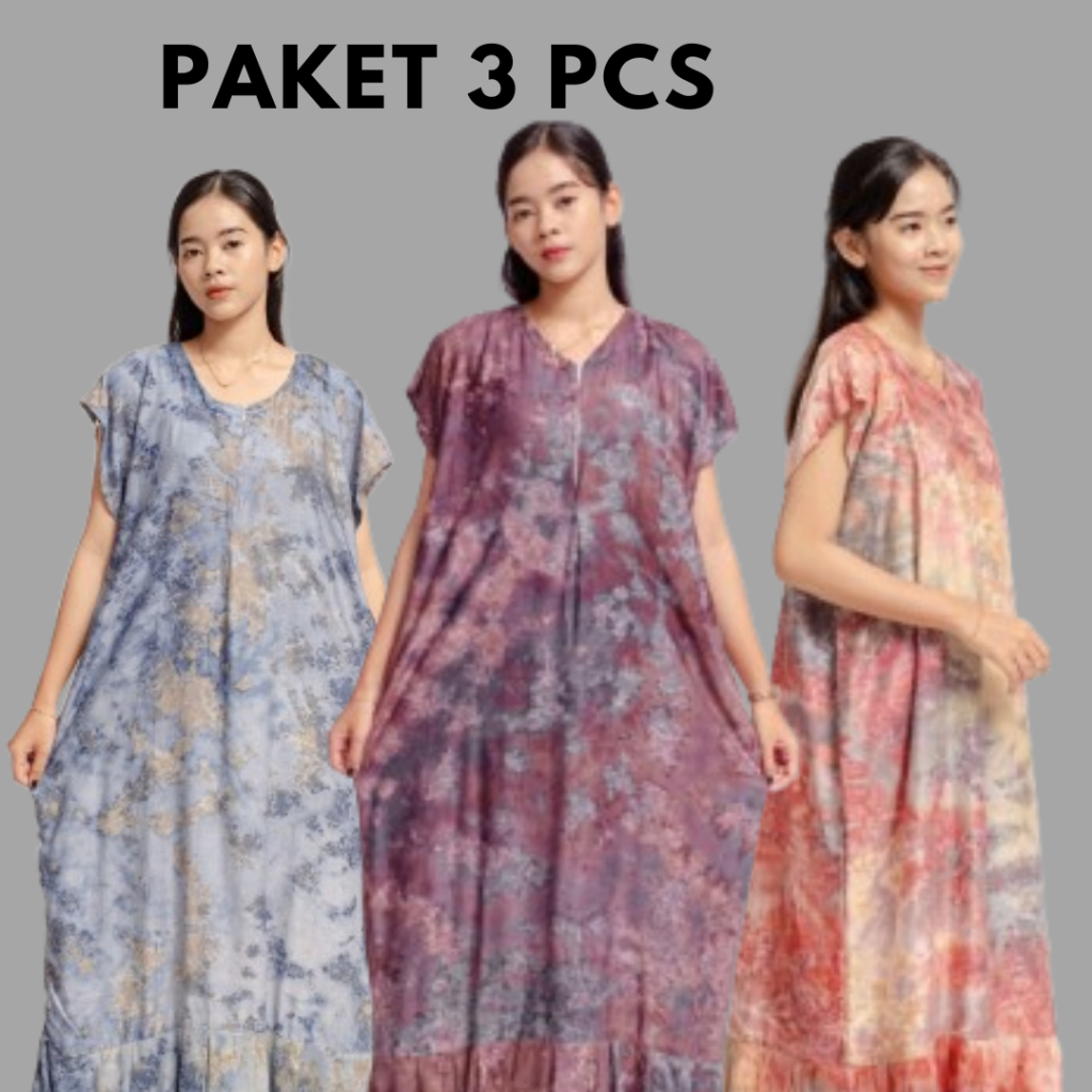 Bundling Isi 3 pcs Daster Kimberly Dress Long Zipper Busui Friendly