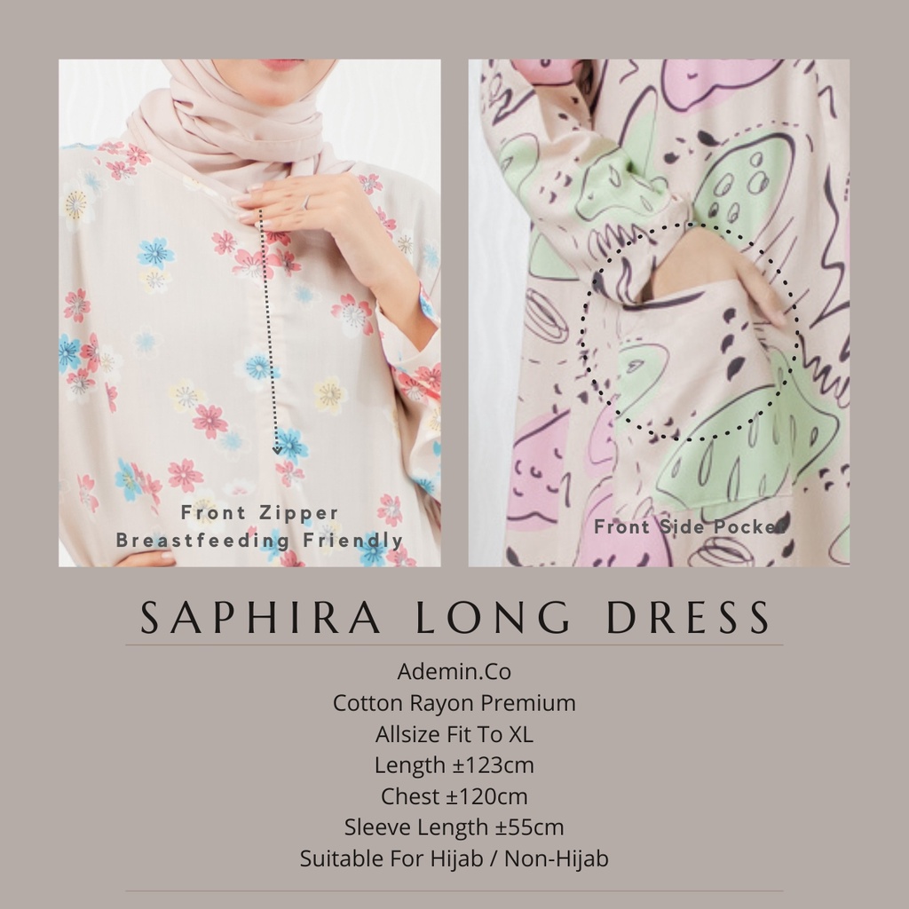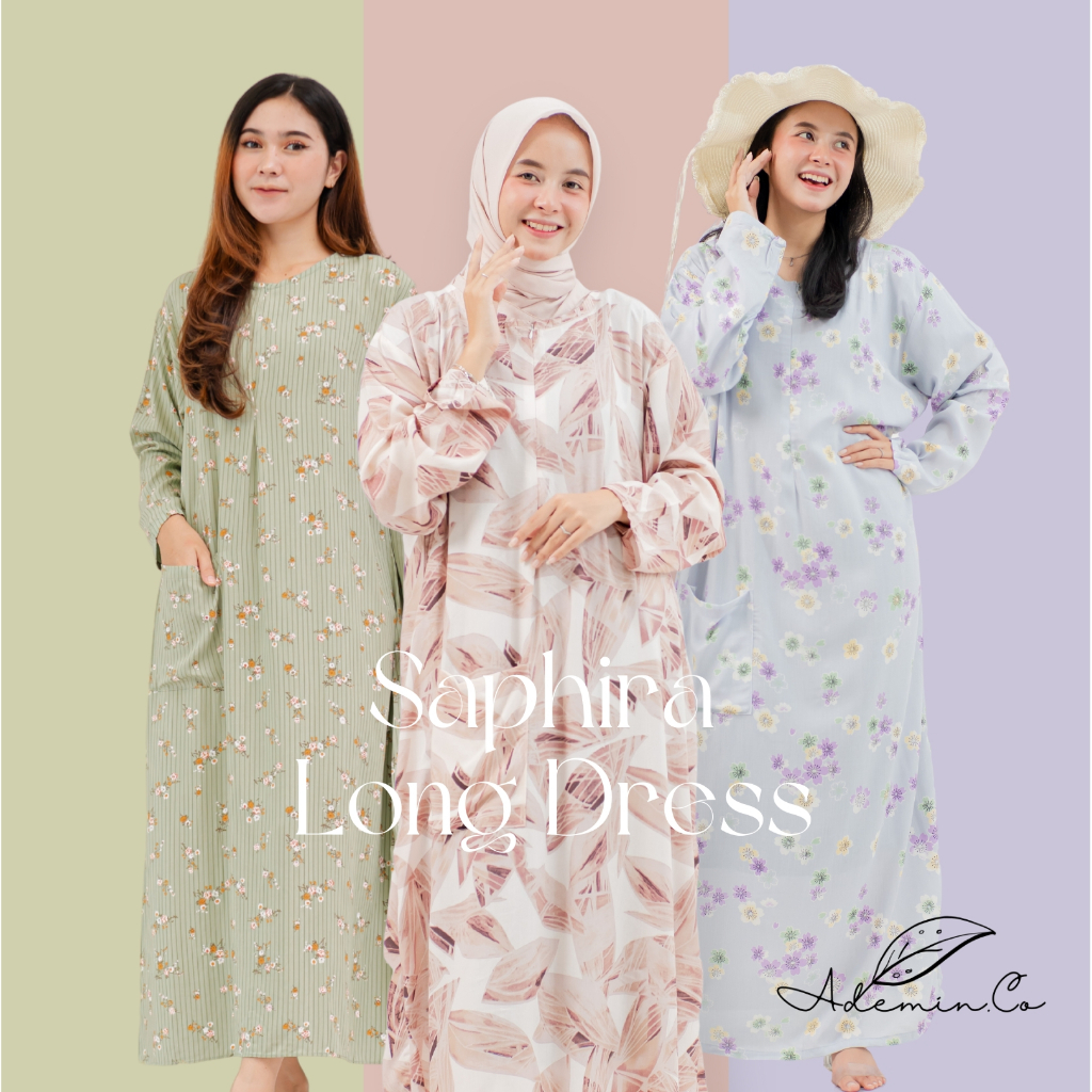 SAPHIRA Long Dress Rayon Premium By Ademin.Co / Daster Long Basic Lengan Panjang Busui - Bumil Friendly