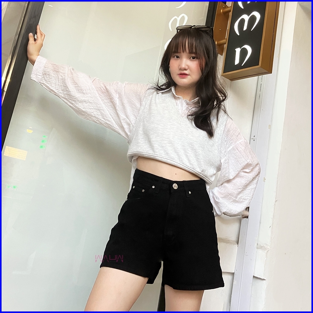 Wauw - Highwaist Celana Pendek Jeans Shorts 2310 Black Shorty
