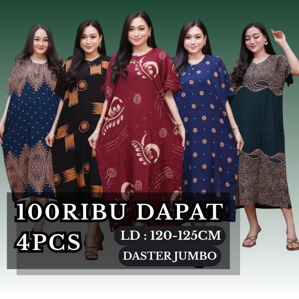 [] Paket Murah 100rb 4pcs Daster Rayon Jumbo Ld 120 Lengan Pendek Busui Kancing Motif Cantik