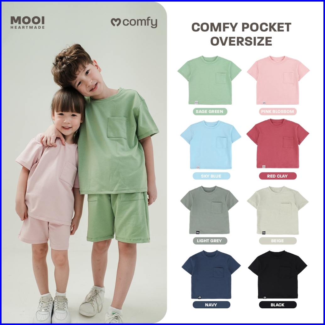 Mooi Kaos Anak Pocket Unisex Comfy Oversized T-shirt Pocket Kids