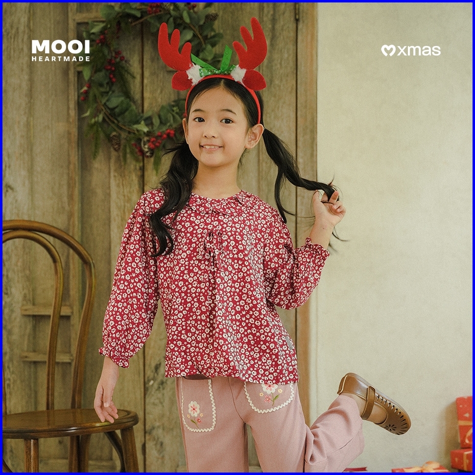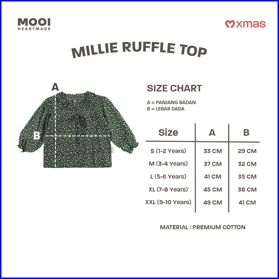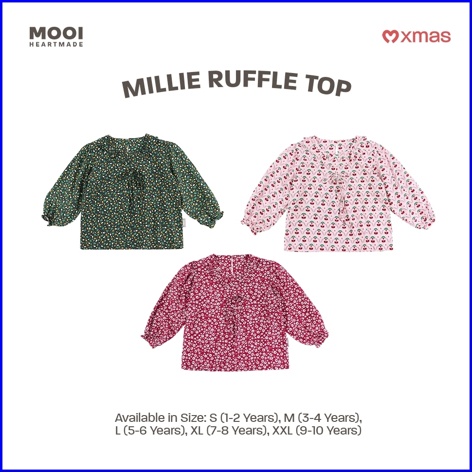 Mooi Atasan Anak Perempuan Christmas Collection Millie Ruffle Top