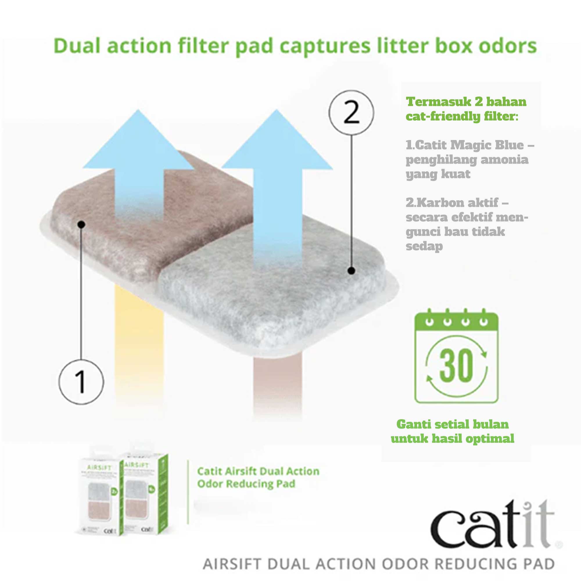 Catit Airsift Dual Action Odor Reducing Pad Refill Filter Pengurang bau Bak Pasir Kucing