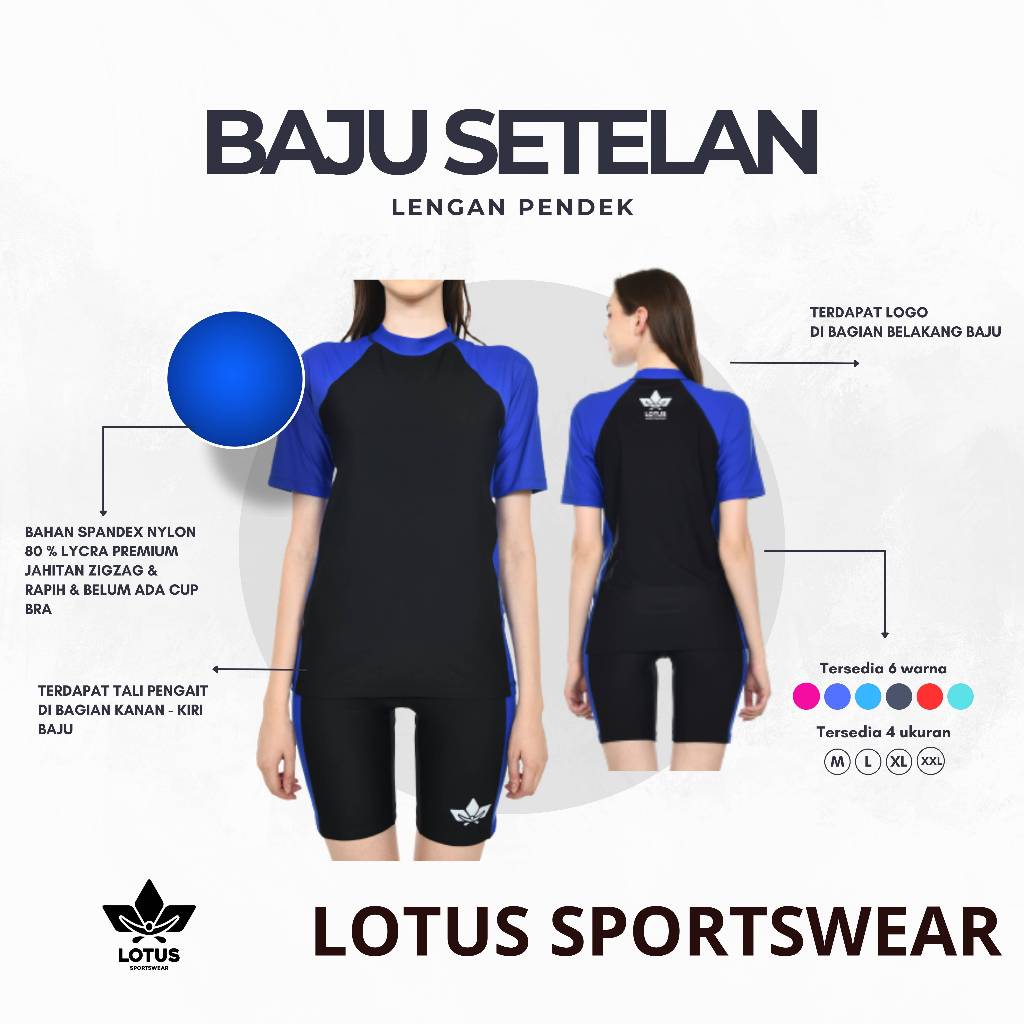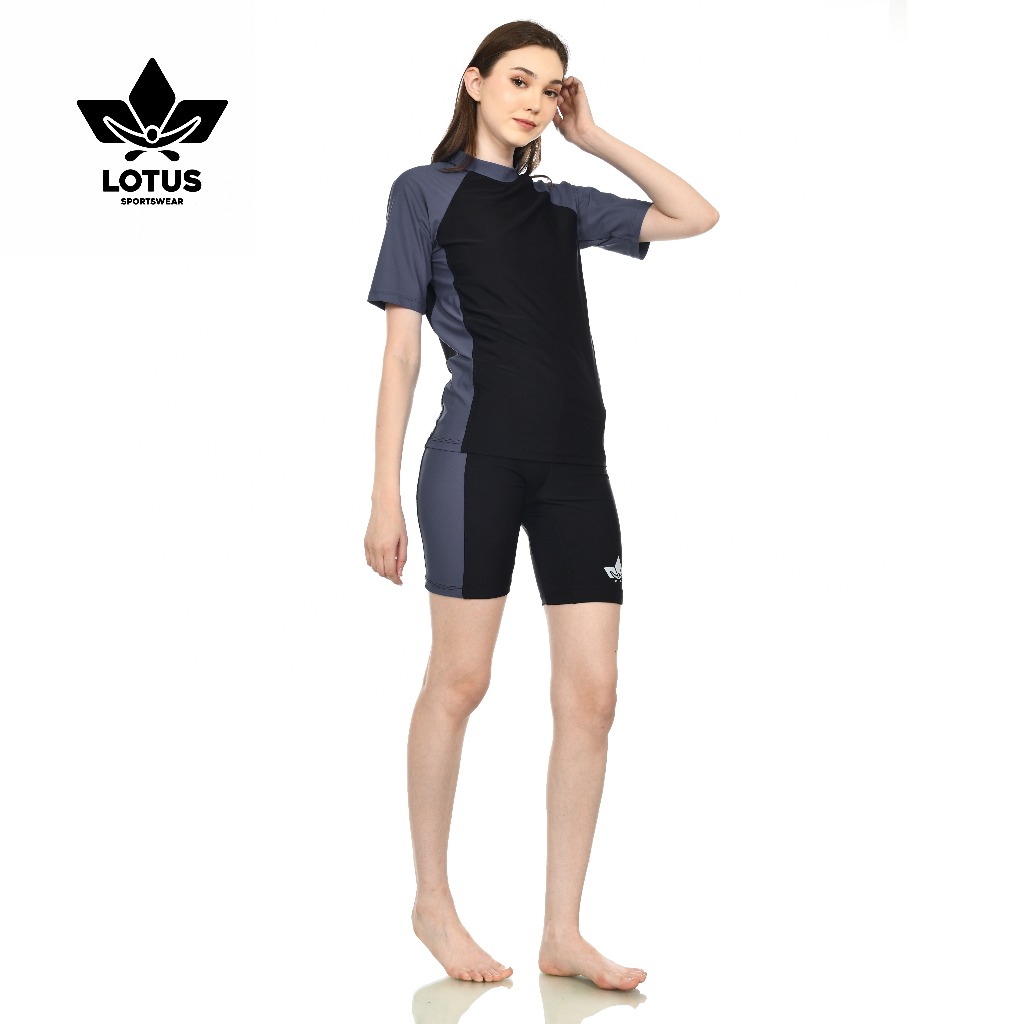 Baju Renang Wanita Dewasa Setelan Tangan Pendek Dan Celana Pendek
