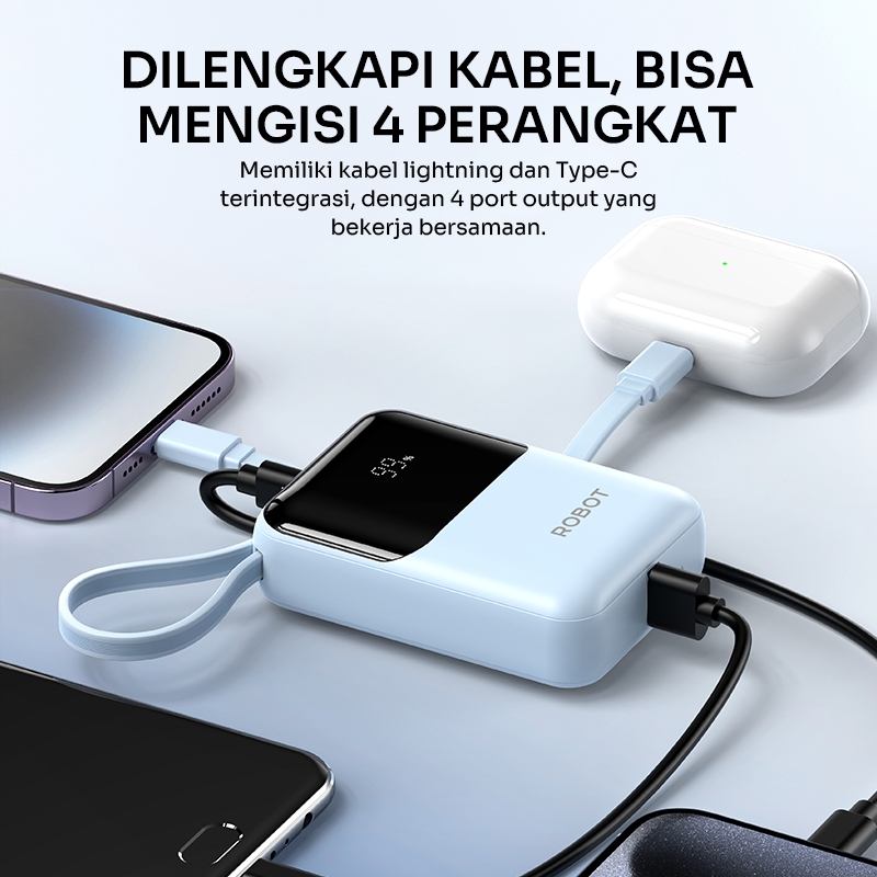 ROBOT Powerbank Mini Fast Charging 20W 9000 mAh Kabel iPhone Android Lighting Type C LED RT16 Original - Garansi 1 Tahu