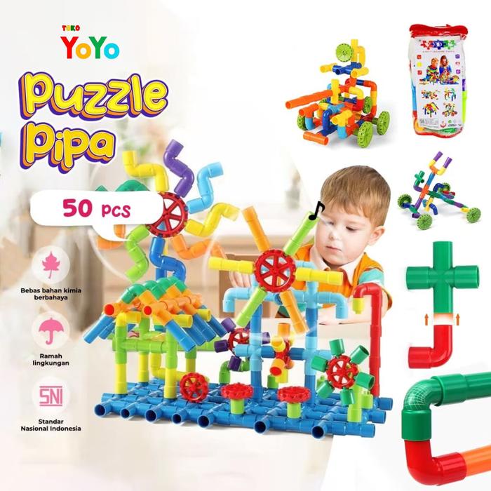 MAINAN BALOK EDUKASI ANAK PIPA PIPE PUZZLE BLOCKS EDUCATION BUILDING BLOCK TOYS - KANTONG