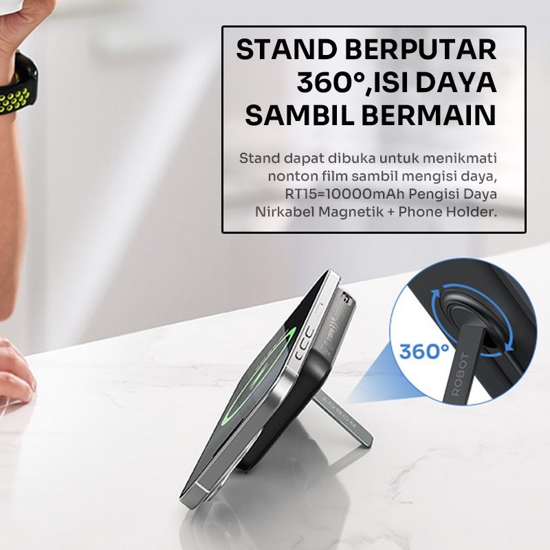ROBOT Powerbank Magnetic Magsafe Kuat 10N PD 20W Fast Charging 10000 mAh RT15 Original - Garansi 1 Tahun