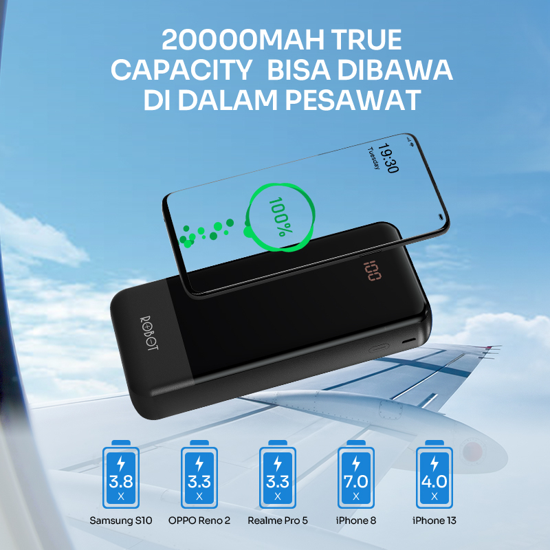 Powerbank ROBOT 20000mAH RP-201L 2.1A Dengan 3 Kabel Type C Lightning Micro - Garansi 1 Tahun