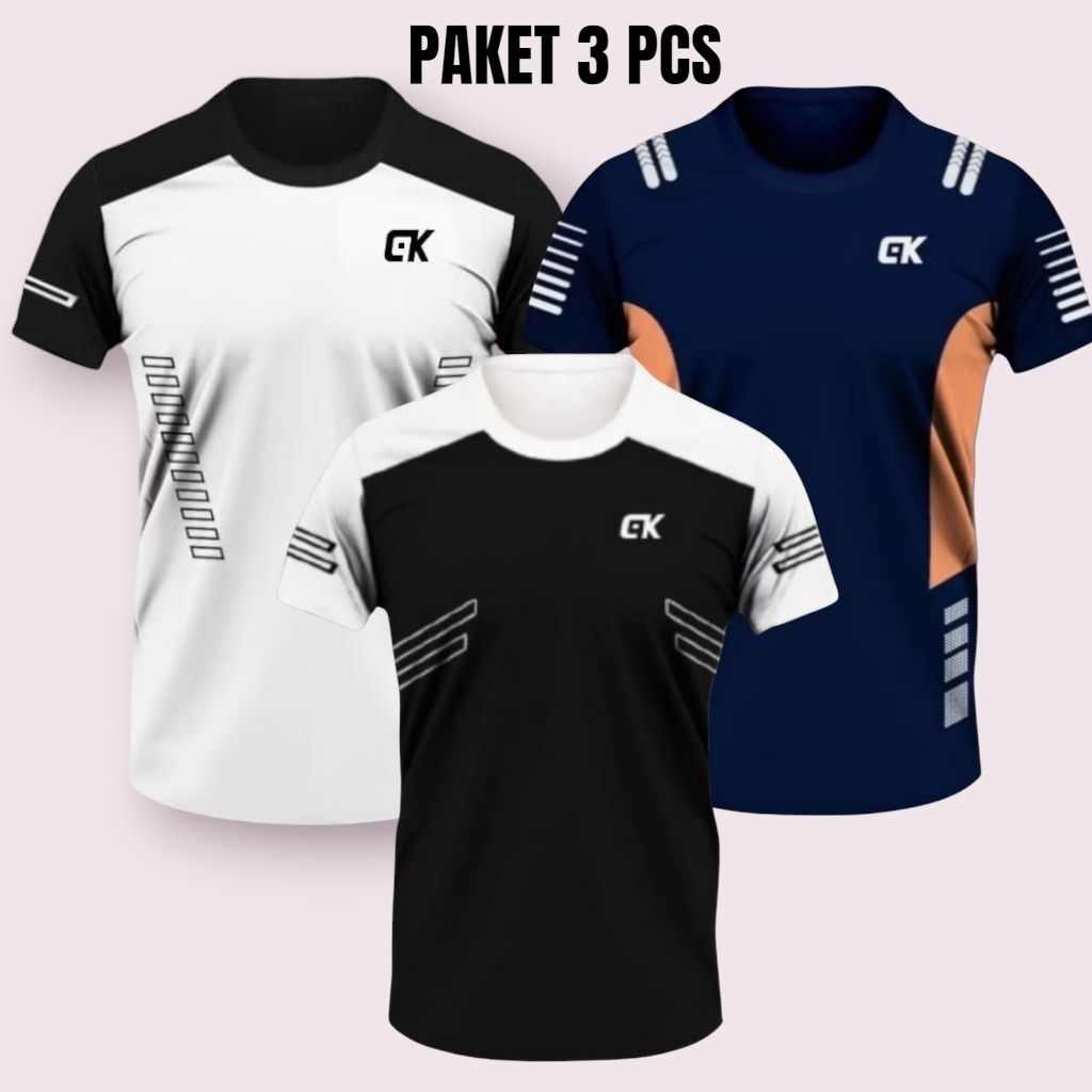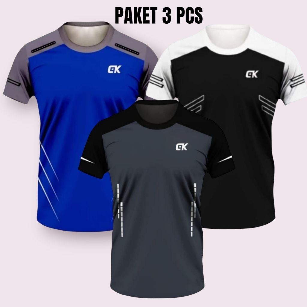 Paket 3 Pcs Kaos Olahraga Pria Dr-Yfit Lengan Pendek Baju Gym Slimfit Kaos Sport Running Badminton Volly Size L Xl Xxl
