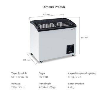 Maspion Ufh-200C Sliding Freezer Kaca 200 Liter Pembeku Ufh-200C_Fk