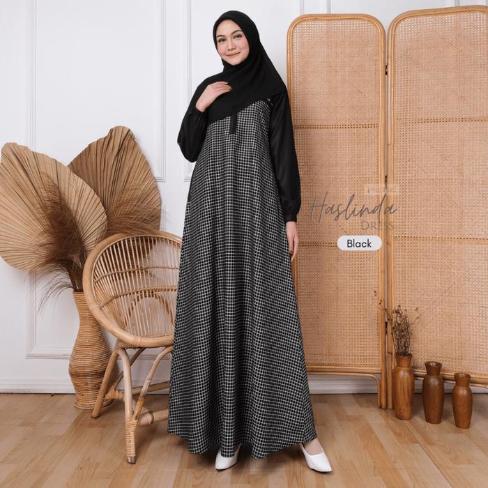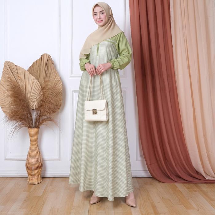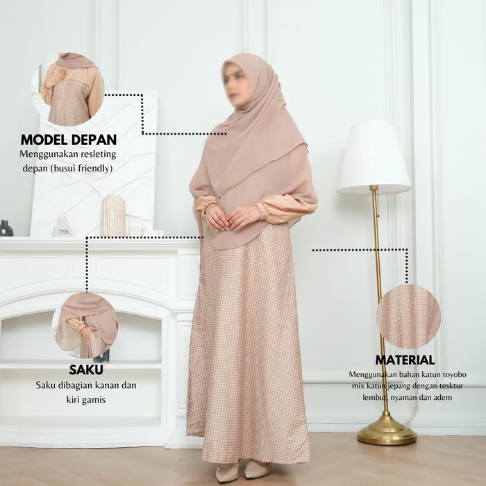 KUPNAD | Gamis Wanita Motif Kotak Katun Jepang Busui Friendly Adem Modern & Nyaman | Haslinda Dress - Navy S