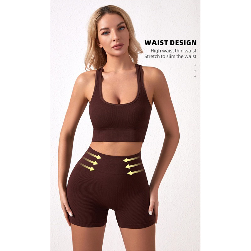 Nicole Sport Set Sport Bra + Short Booty Crunch / Setelan Sport Bra + Celana Legging Pendek Yoga Zumba Gym Fitness Wanit