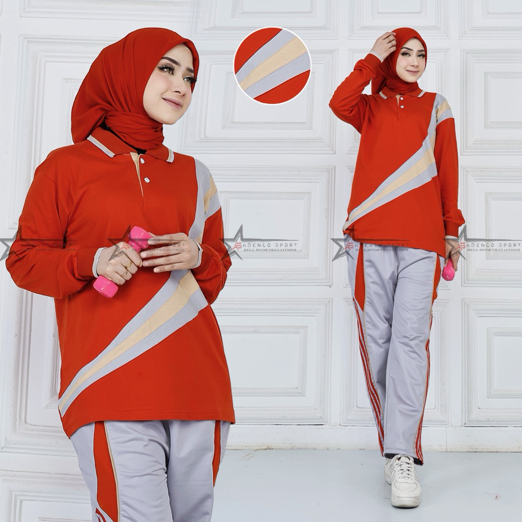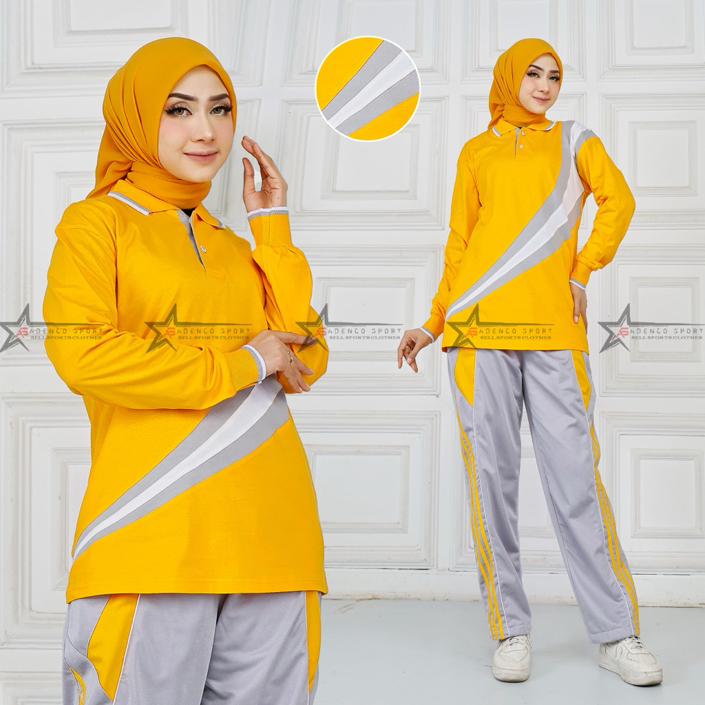 Setelan Kaos Training Olahraga Senam Wanita / Seragaam Baju Olahraga Lengan Panjang / Setelan Senam