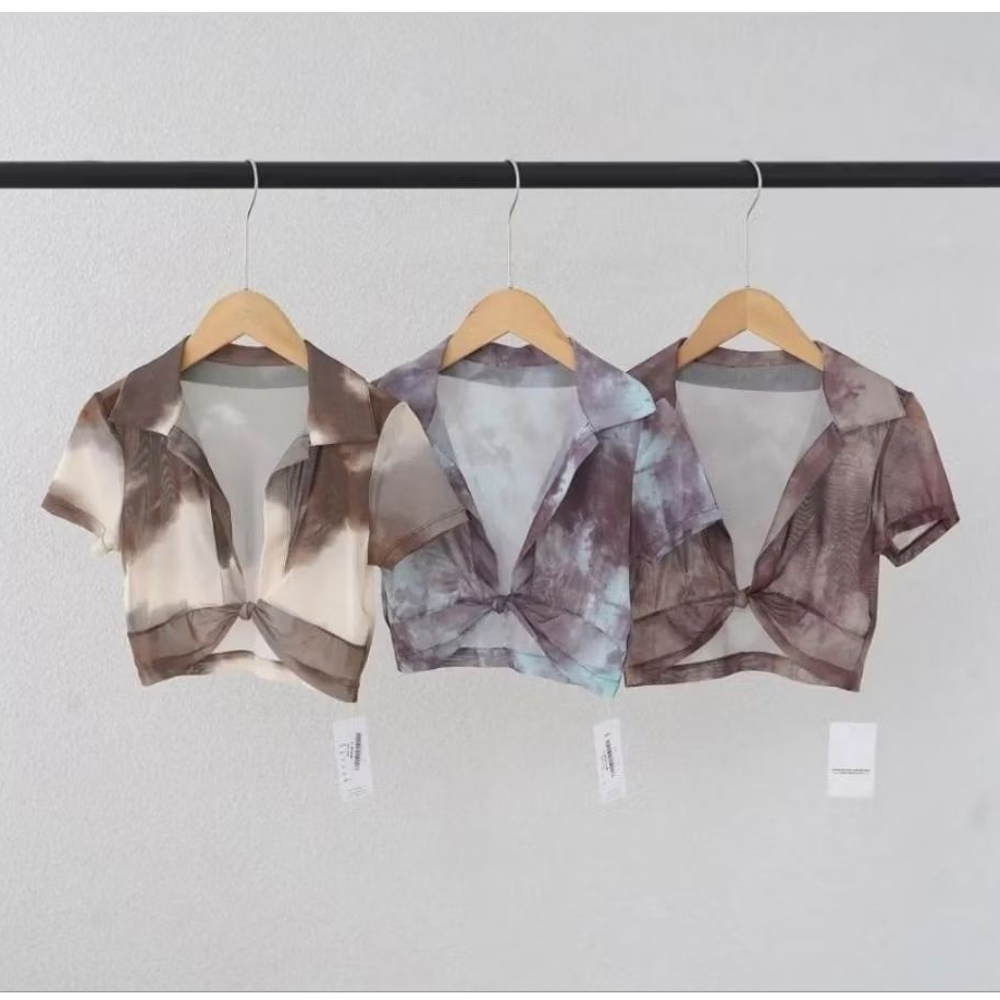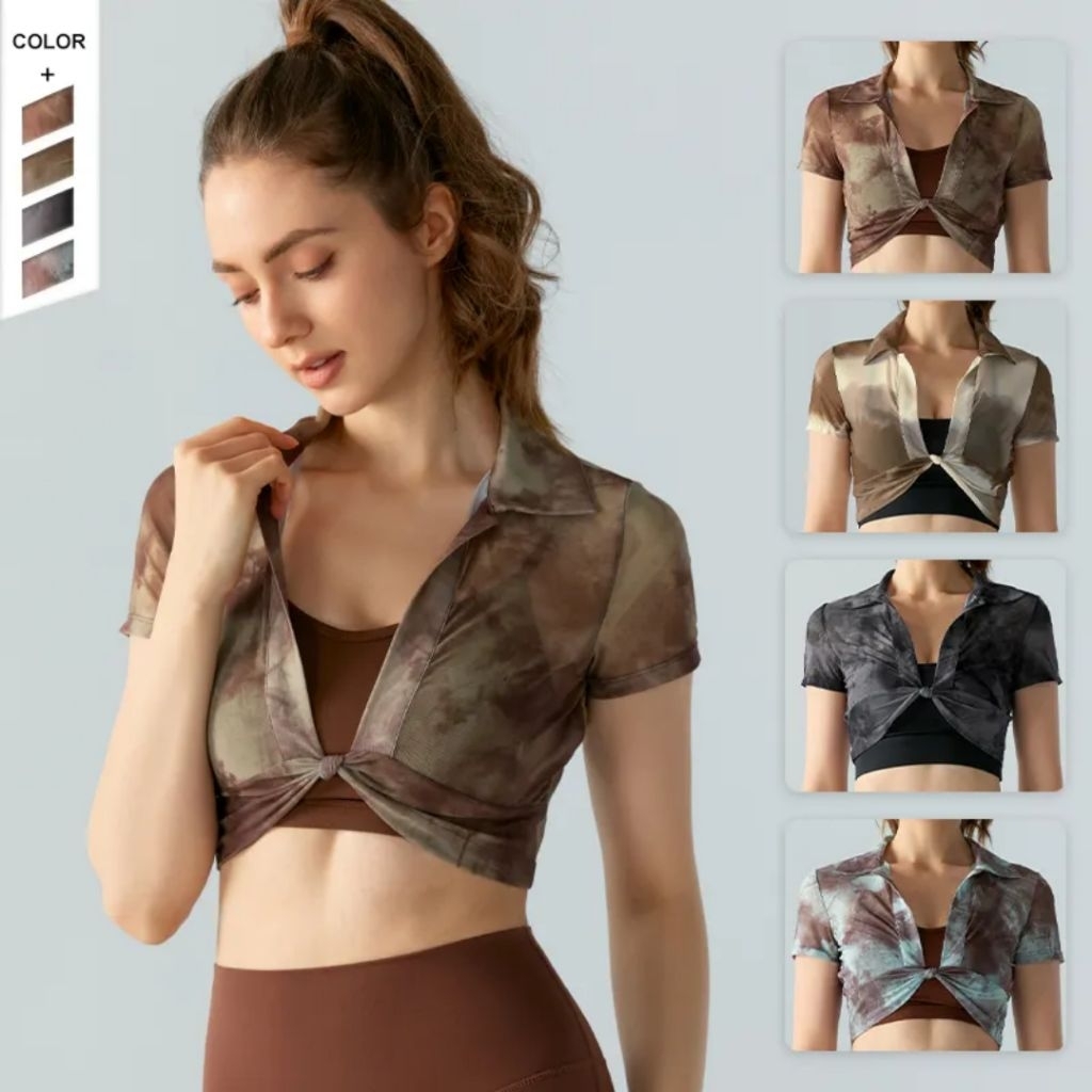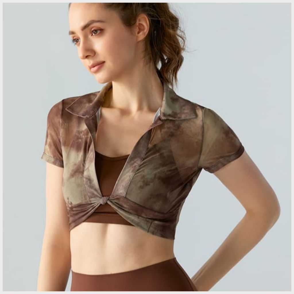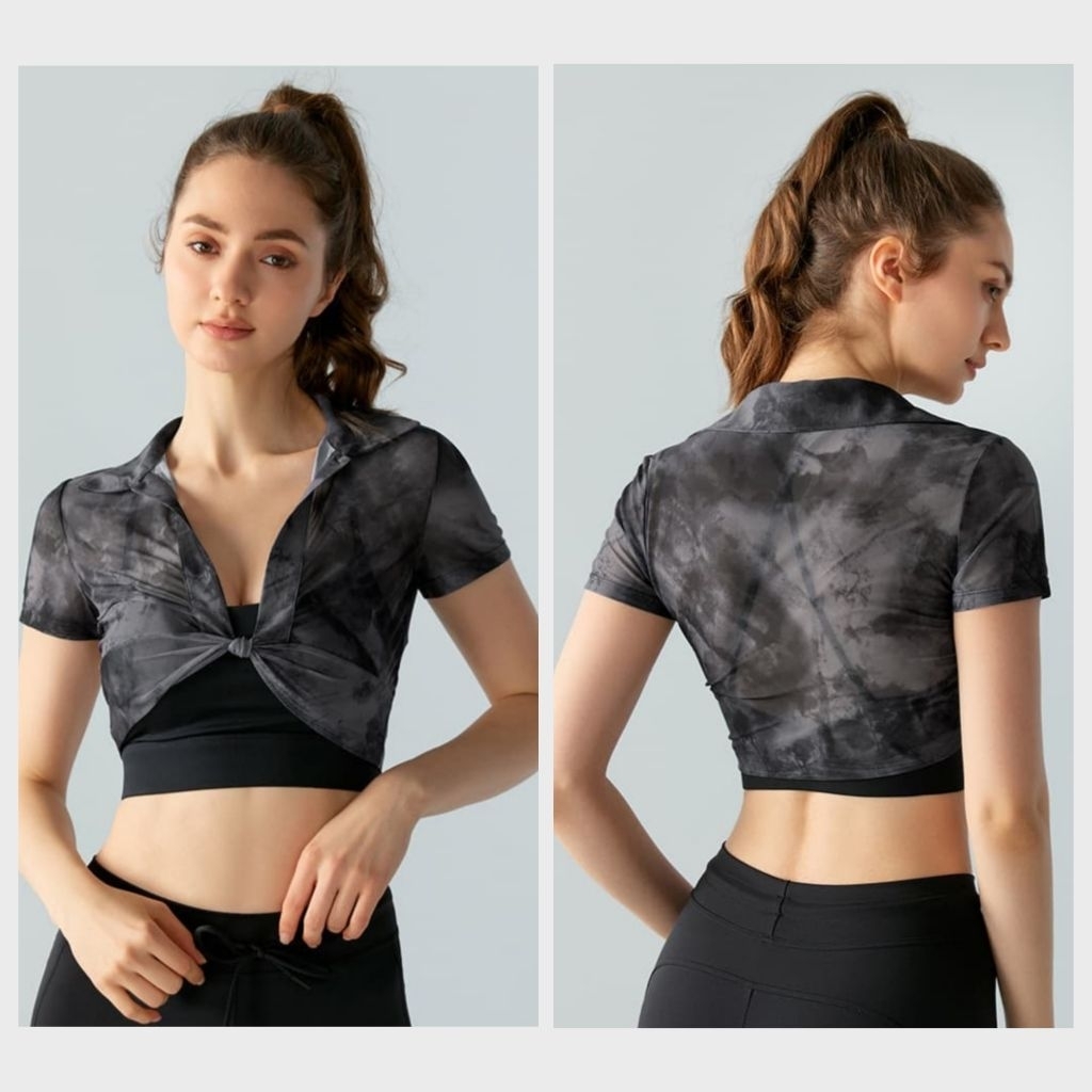 Paula Abstract Mesh Crop Top Atasan Olahraga Wanita Sport Gym Pilates Zumba Workout