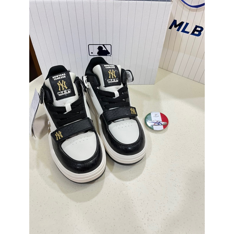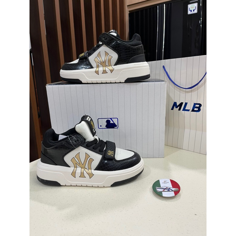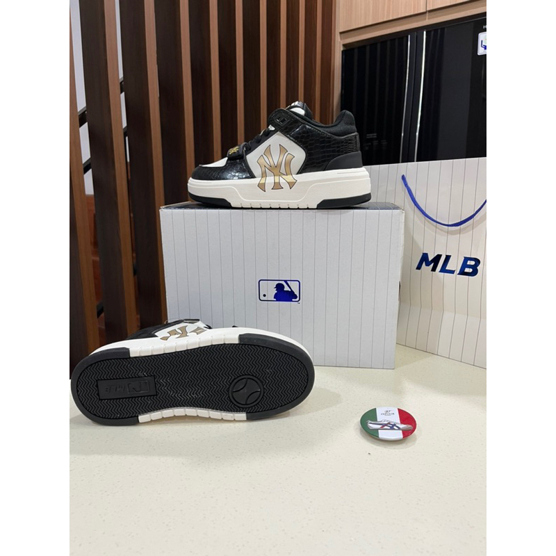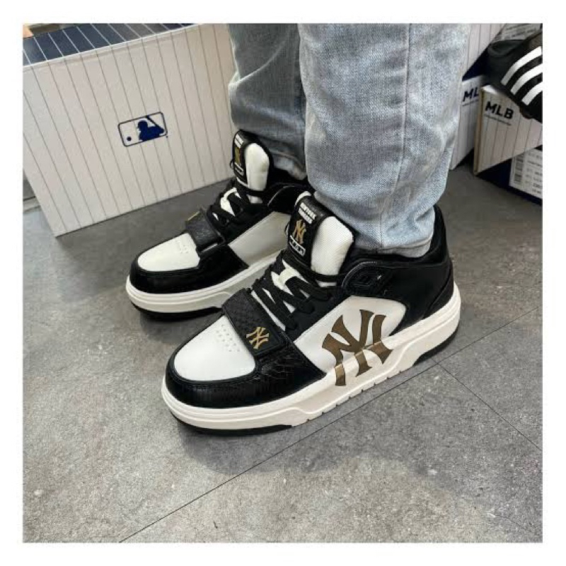 Sepatu MLB Chunky Liner Mid Lux New York Yankees Black Gold
