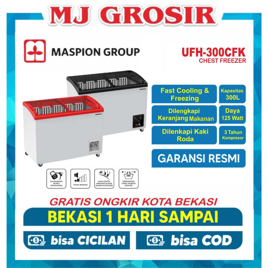 Maspion Ufh 300 Cfk / Xs 320 / Sd 303 Chest Freezer 300 Liter / 200 Liter Lemari Pembeku Sliding