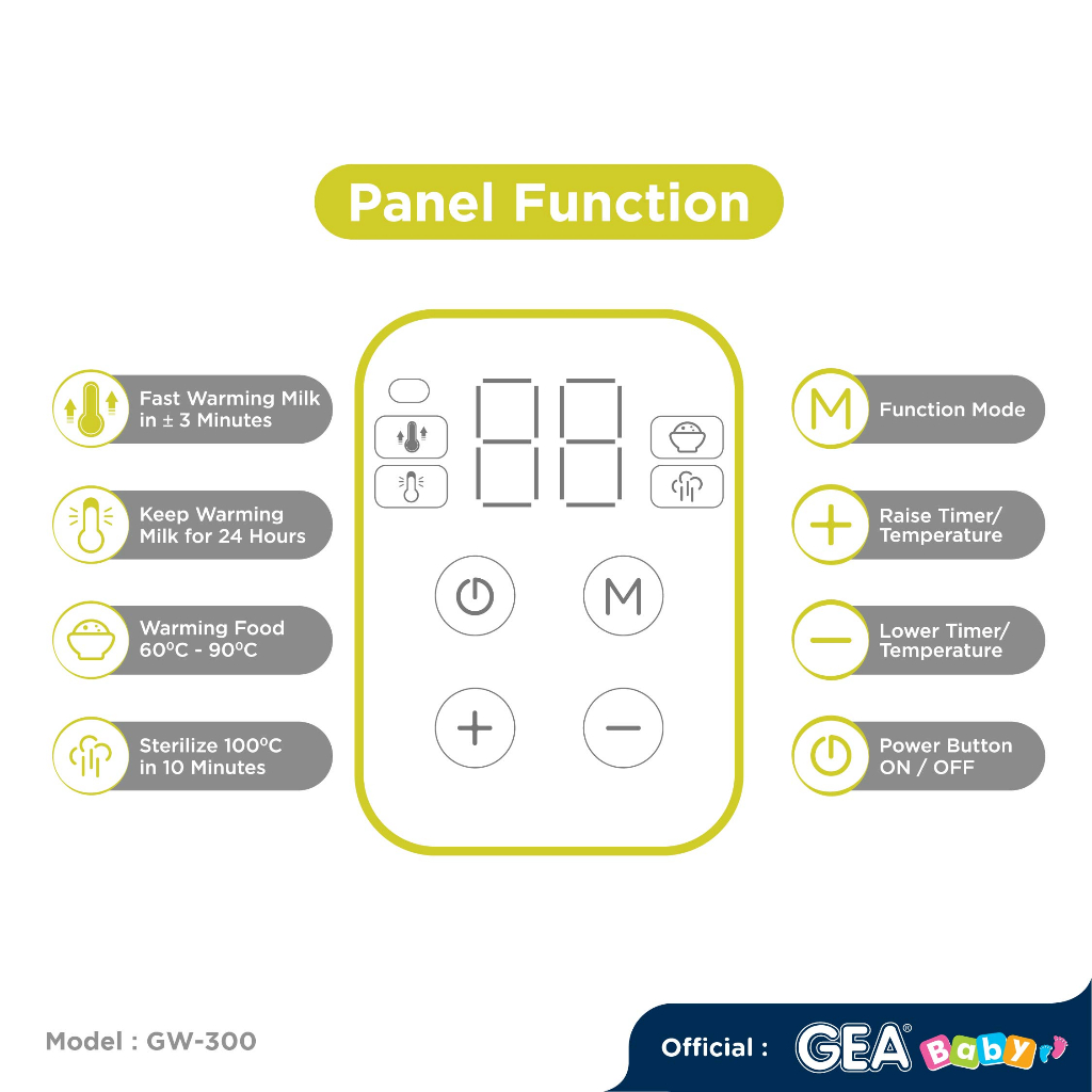 Gea Baby Gw-300 Smart Multifunction Bottle Warmer & Sterilizer / Penghangat Susu / Sterilisasi Uap