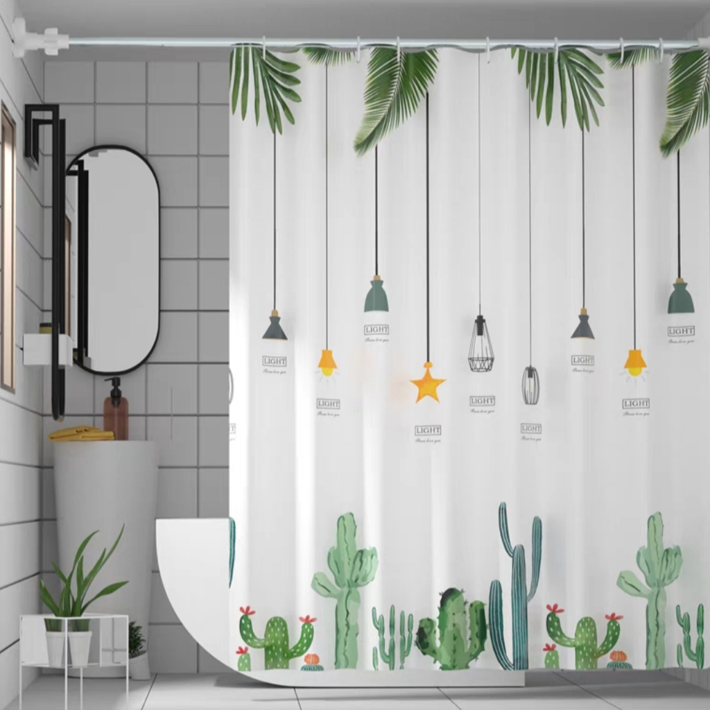 Tirai Kamar Mandi Anti Air Bahan Peva Lengkap Dengan Pengait / Tirai Shower Anti Air Shower Curtain