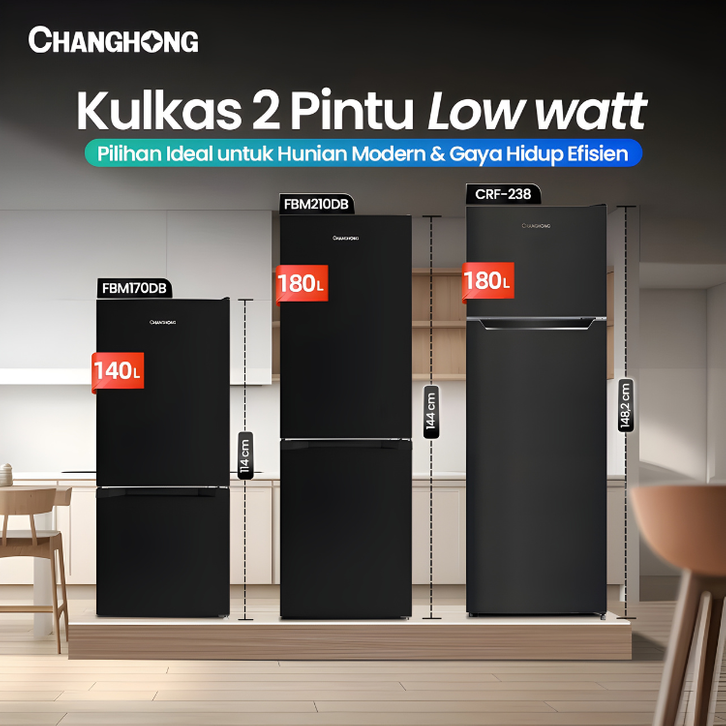 Changhong Kulkas 2 Pintu CRF238 Kapasitas 180 Liter Black Semi Low Frost Murah 1 Pintu Mini Dua Sharp Polytron Lg