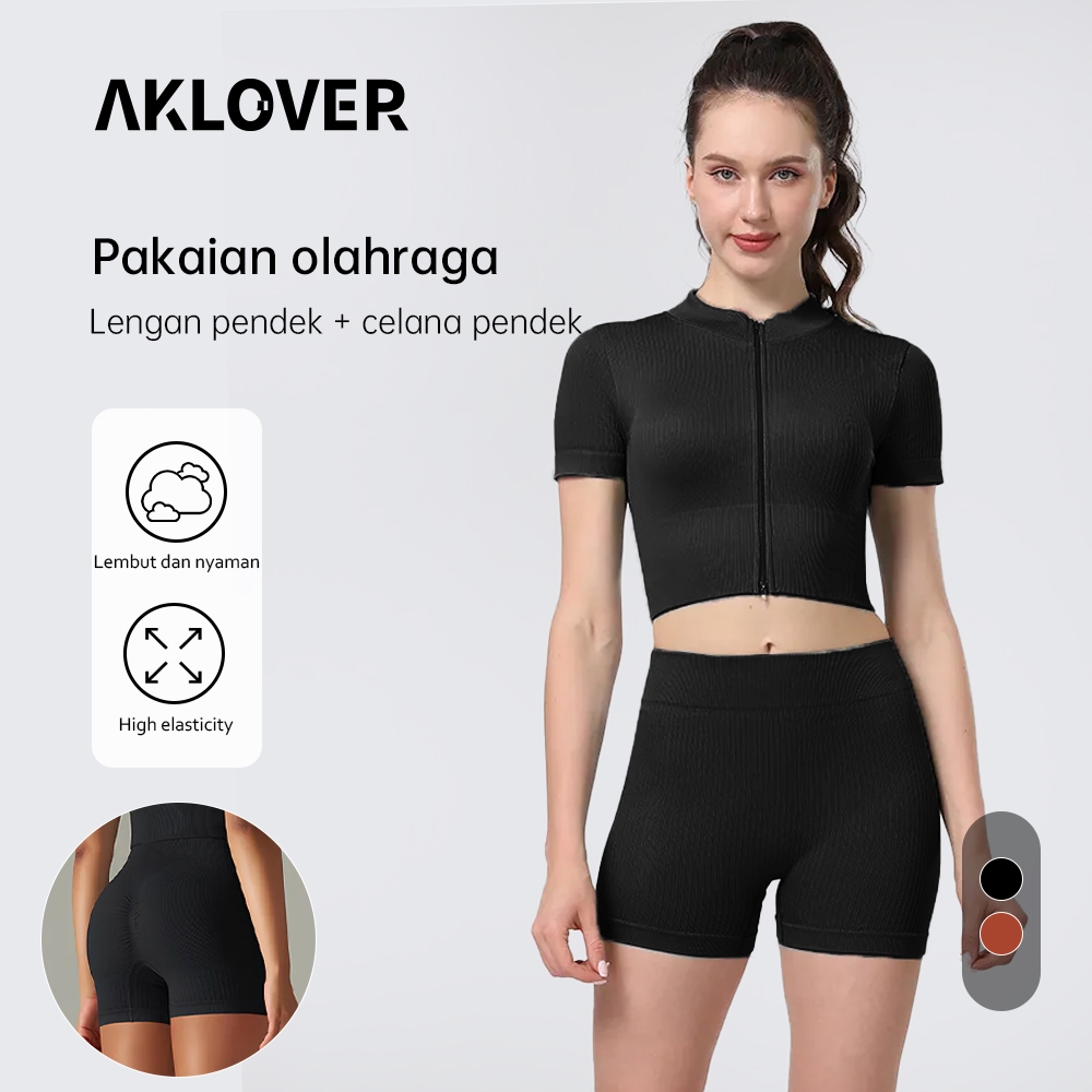 Aklover Celana Pendek Olahraga Wanita High Waist Yoga Baju Gym Wanita Sportwear Set