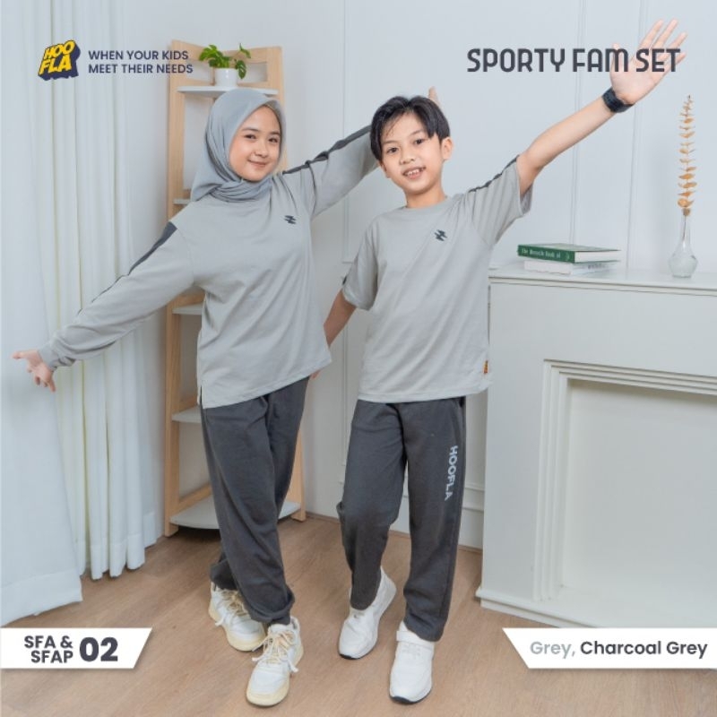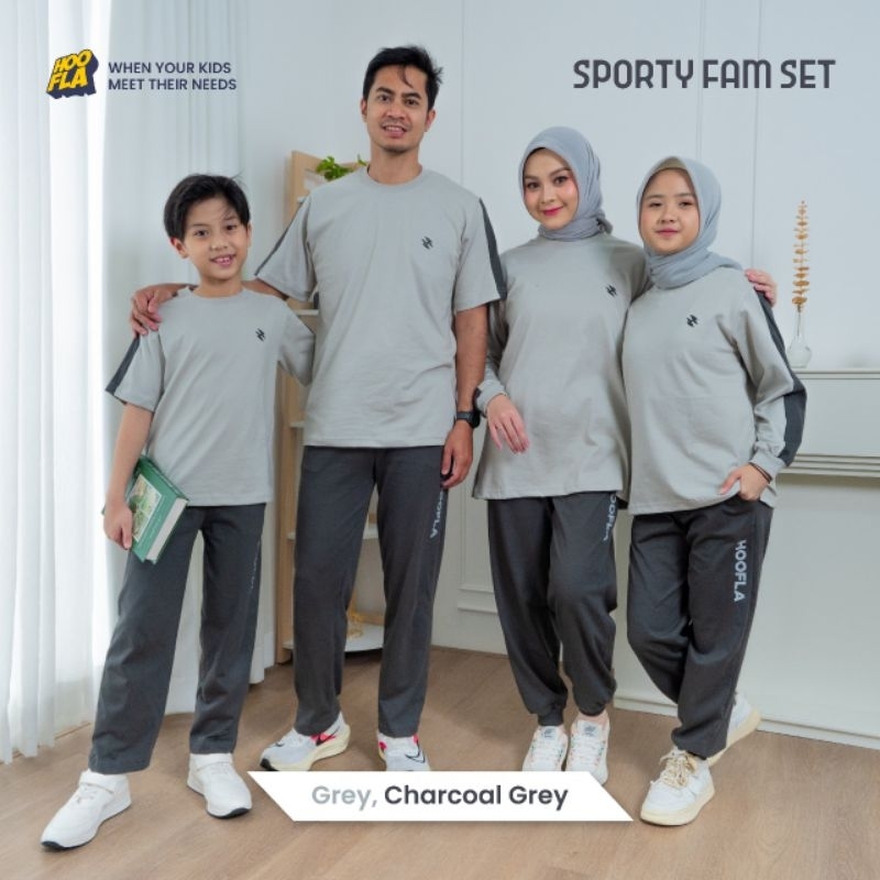 Set Baju Olah Raga Anak Dan Dewasa Sporty Fam Set Grey Baju Sarimbit Olah Raga Hoofla
