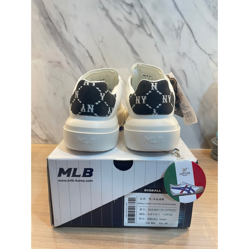 Sepatu MLB NY Yankess Chunky Classis Heel Dia Monogram White Black /Free Paperbag dan Kaos Kaki