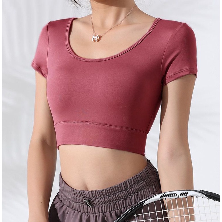 Baju Senam Olahraga Crop Gym Yoga Zumba Ada Cup / Busa Atasan Wsm 533