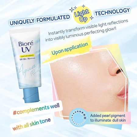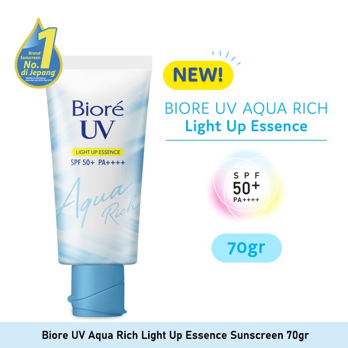 Biore Uv Aqua Rich Sunscreen Glowing Natural Light Up Essence Spf 50 Pa++++ 70 Gr - Skincare Wajah Sunblock
