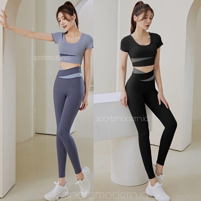Set Pakaian Olahraga Wanita T-Shirt & Celana Yoga Pinggang Tinggi[Setcaramel]