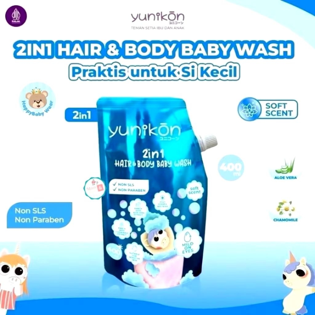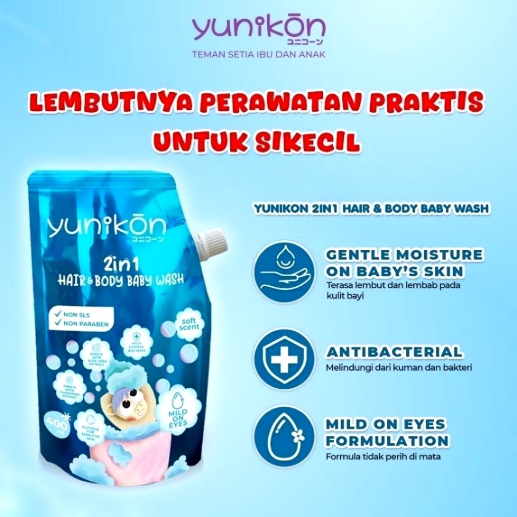 [Star] Yunikon 2in1 Hair & Body Baby Wash 400ml – Sabun & Shampo Anak, Lembut untuk Kulit Sensitif