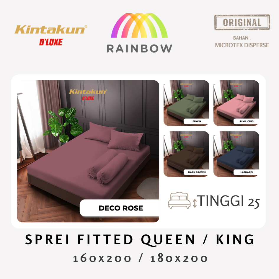 Kintakun Deluxe - Sprei Fitted Queen / King T25 (160X200/180X200) Polos Korea Tinggi 25 Ada Karet Anti Slip